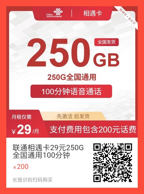 29元250G全国通用100分钟,长期套餐