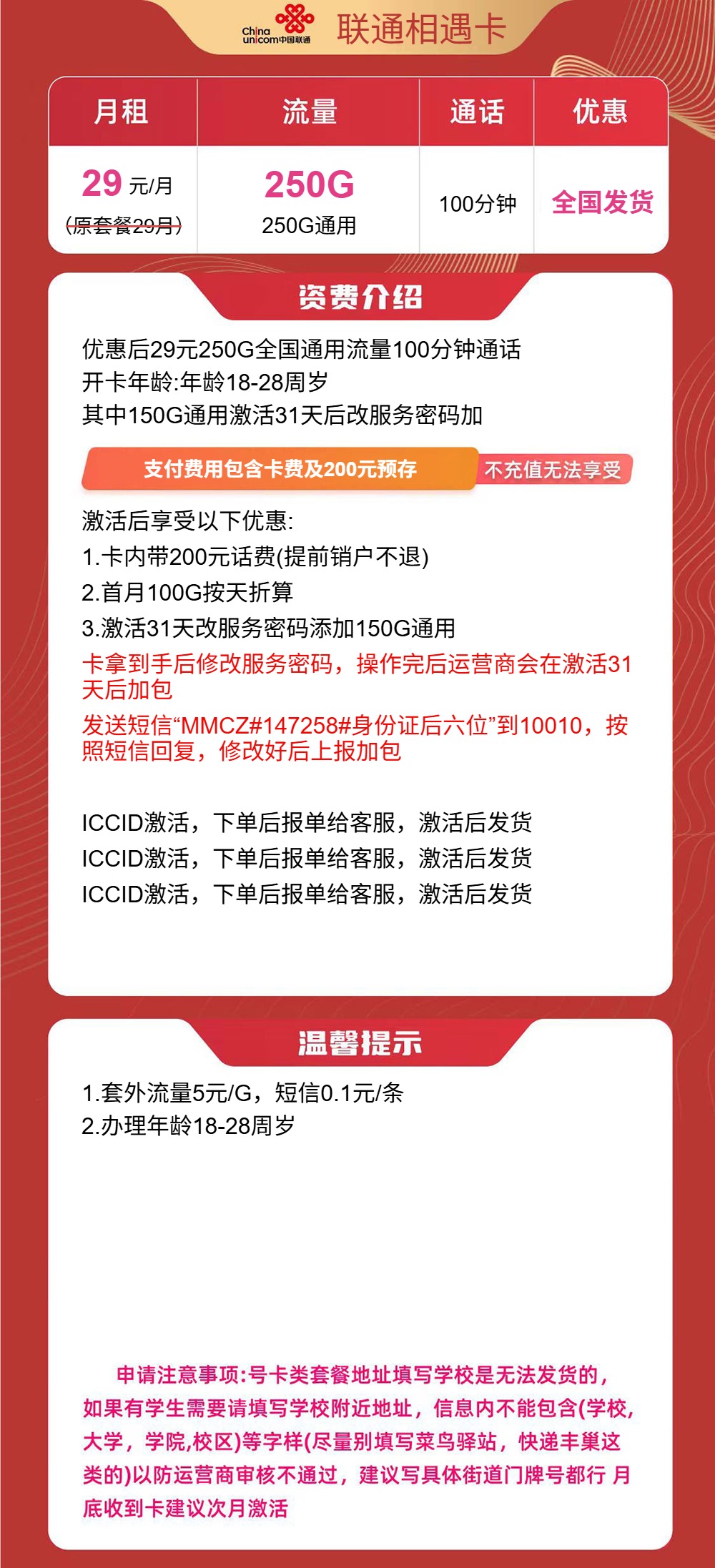 ...全文联通相遇卡(下单预存200话费)